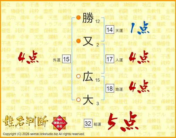 勝又広大さんの総運は32画の5点!