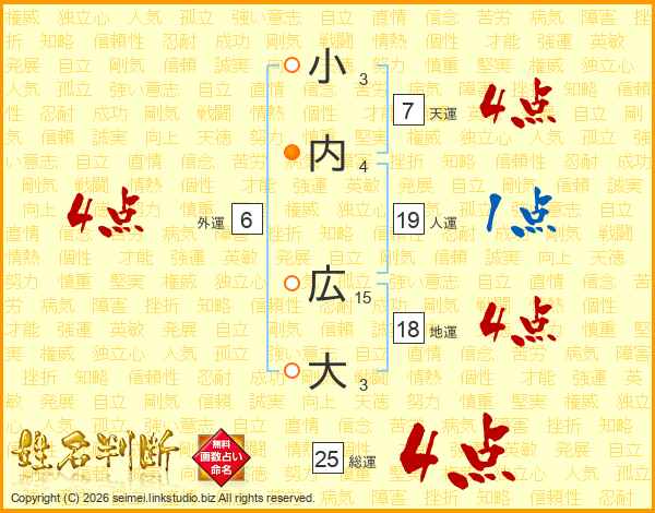 小内広大さんの総運は25画の4点!