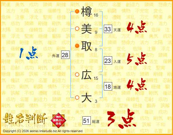 樽(16画)美(9画)取(8画) 広(15画)大(3画)