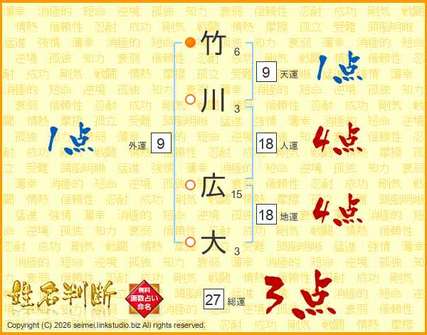 竹川広大さんの人運は18画の4点!