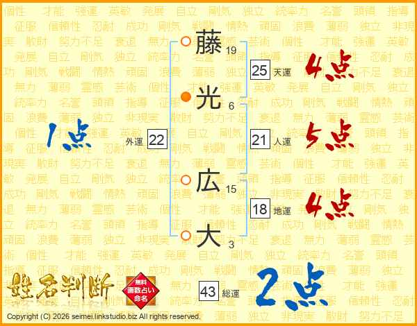 藤光広大さんの天運は25画の4点!