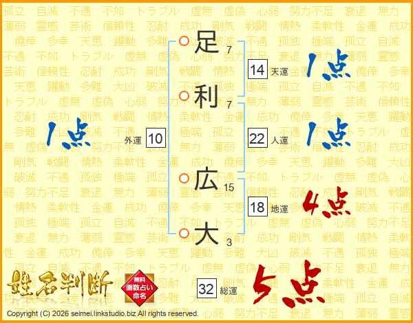 足利広大さんの総運は32画の5点!