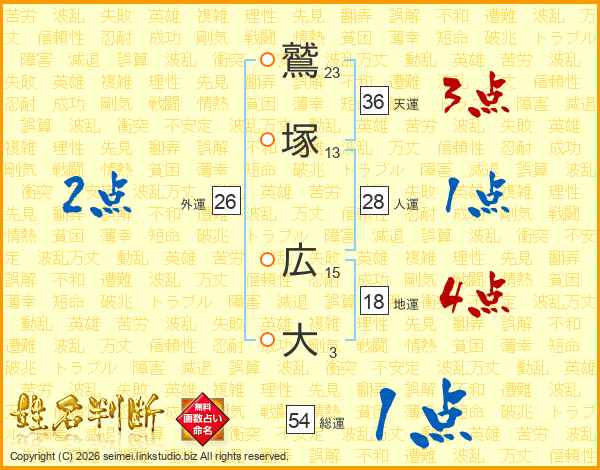 鷲塚広大さんの天運は36画の3点!