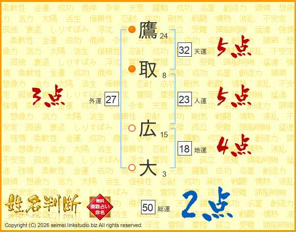 鷹取広大さんの総運は50画の2点!
