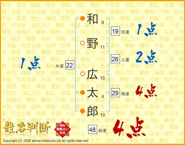 和野広太郎さんの総運は48画の4点!