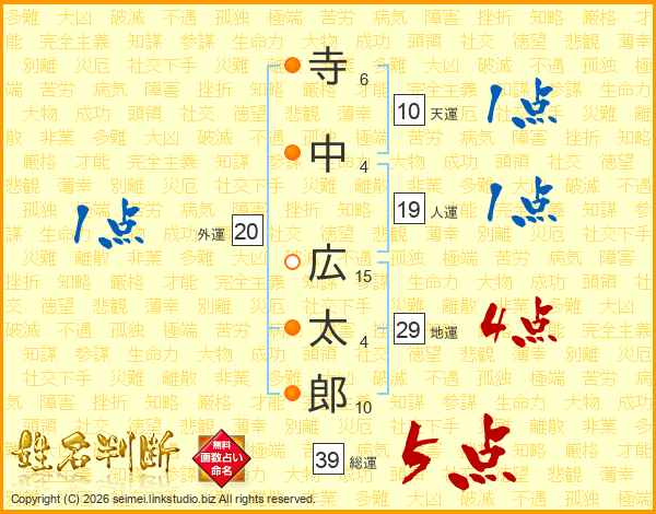 寺(6画)中(4画) 広(15画)太(4画)郎(10画)