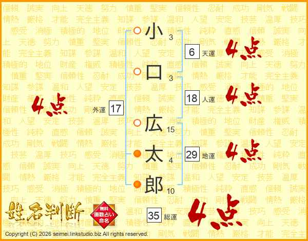 小口広太郎さんの総運は35画の4点!