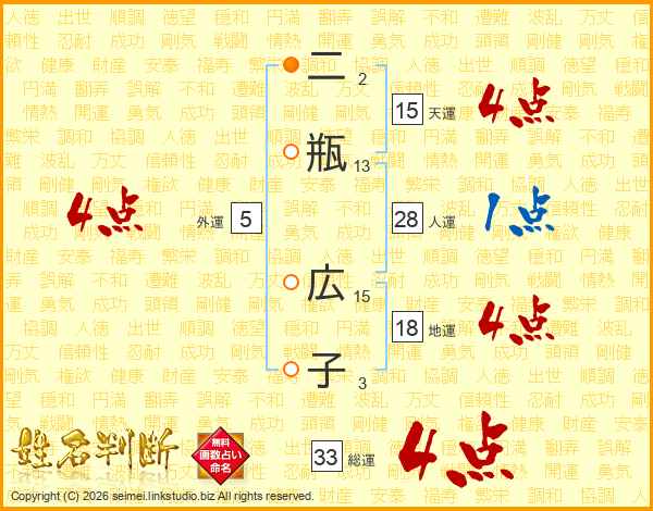 二瓶広子さんの総運は33画の4点!