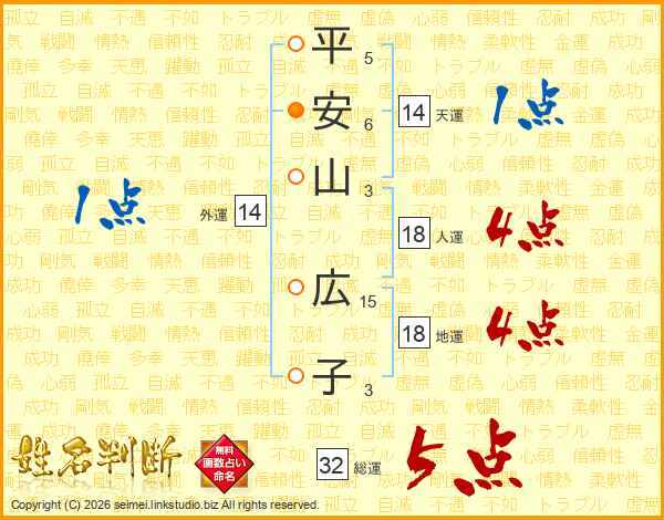 平安山広子さんの総運は32画の5点!