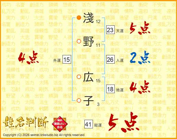 淺野広子さんの総運は41画の5点!