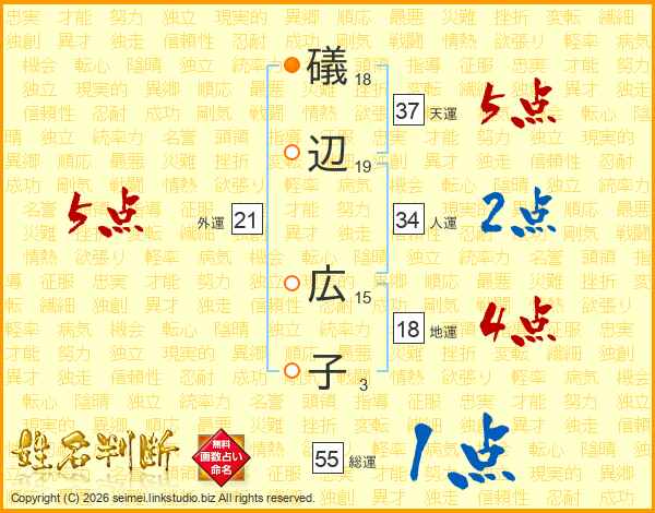 礒辺広子さんの外運は21画の5点!