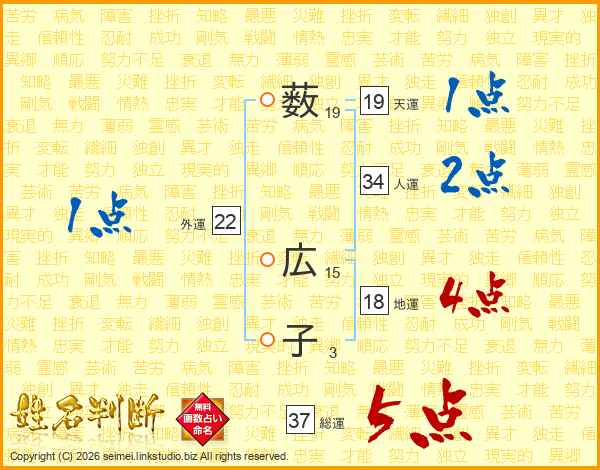 薮広子さんの総運は37画の5点!