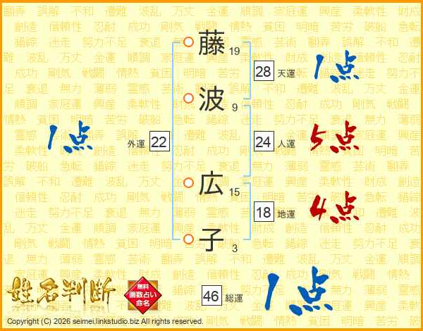 藤波広子さんの総運は46画の1点!