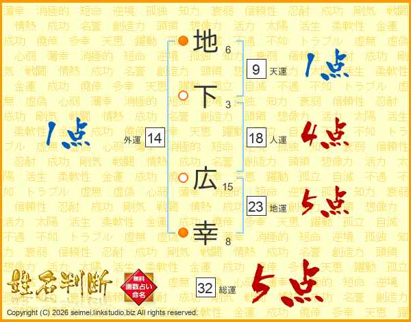 地下広幸さんの総運は32画の5点!
