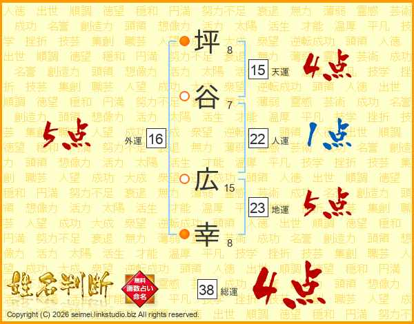 坪谷広幸さんの地運は23画の5点!