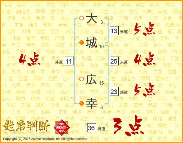 大城広幸さんの天運は13画の5点!