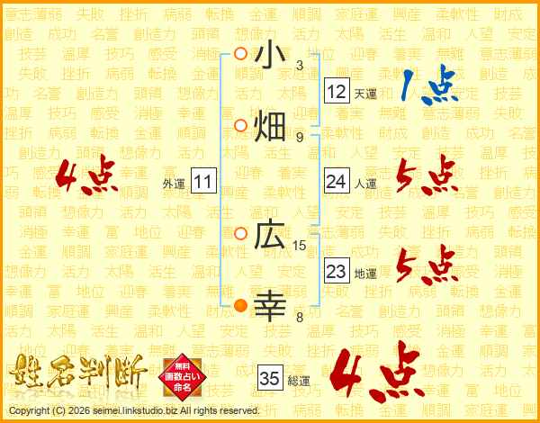 小畑広幸さんの総運は35画の4点!