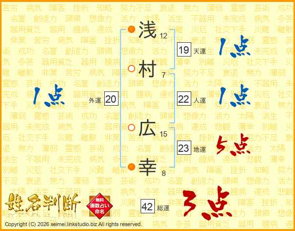浅村広幸さんの地運は23画の5点!