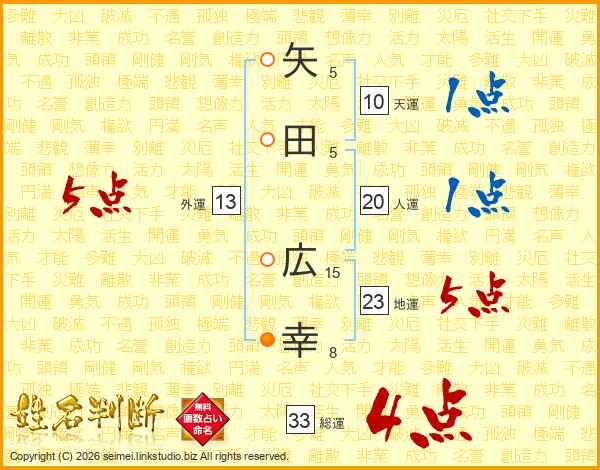 矢田広幸さんの地運は23画の5点!