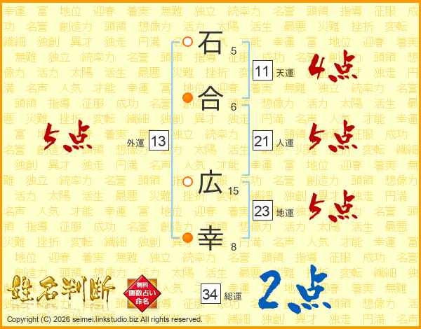 石合広幸さんの地運は23画の5点!