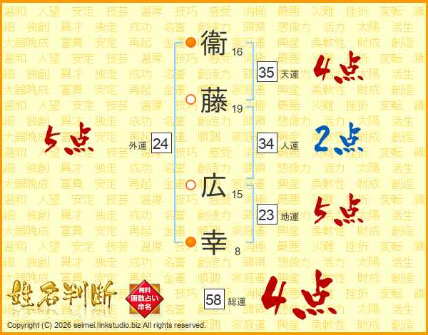 衞藤広幸さんの総運は58画の4点!