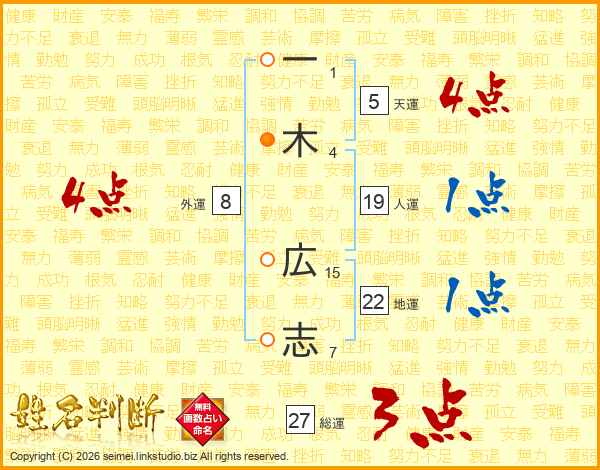 一(1画)木(4画) 広(15画)志(7画)