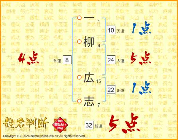 一柳広志さんの総運は32画の5点!