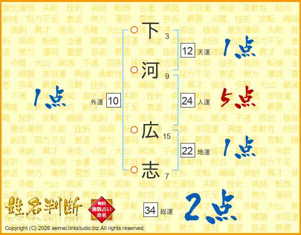 下河広志さんの地運は22画の1点!