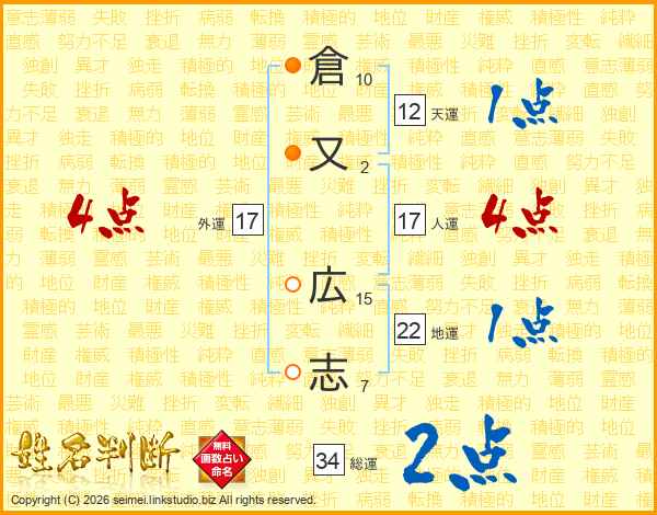 倉又広志さんの総運は34画の2点!