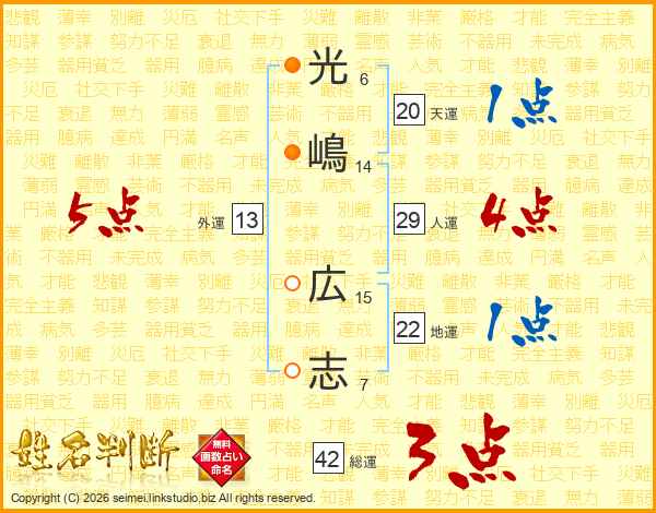 光嶋広志さんの人運は29画の4点!