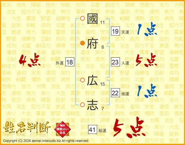 國(11画)府(8画) 広(15画)志(7画)