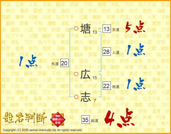 塘広志さんの総運は35画の4点!