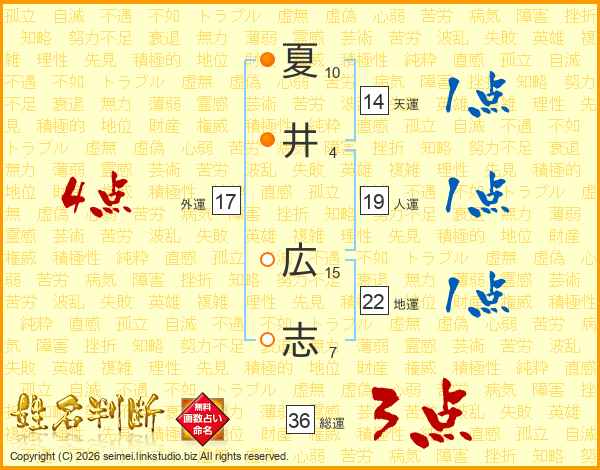 夏井広志さんの総運は36画の3点!