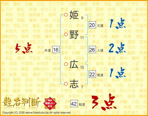 姫野広志さんの天運は20画の1点!