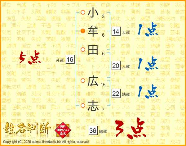 小牟田広志さんの人運は20画の1点!