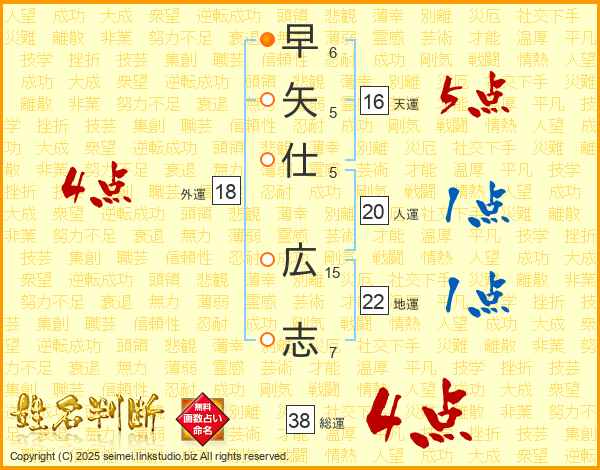早(6画)矢(5画)仕(5画) 広(15画)志(7画)