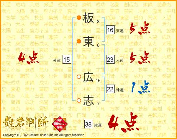 板東広志さんの総運は38画の4点!