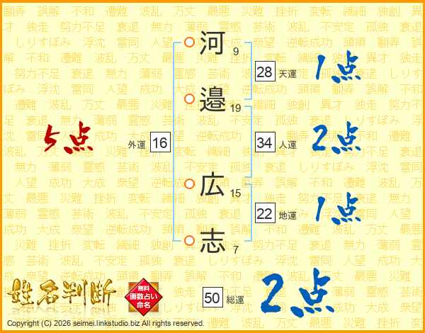 河邉広志さんの地運は22画の1点!