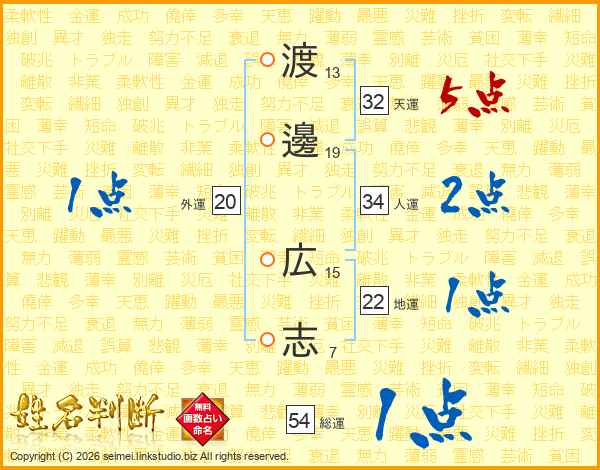 渡邊広志さんの総運は54画の1点!
