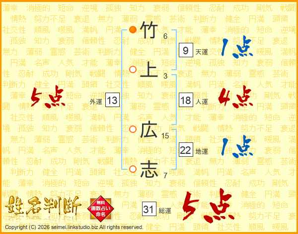 竹上広志さんの総運は31画の5点!