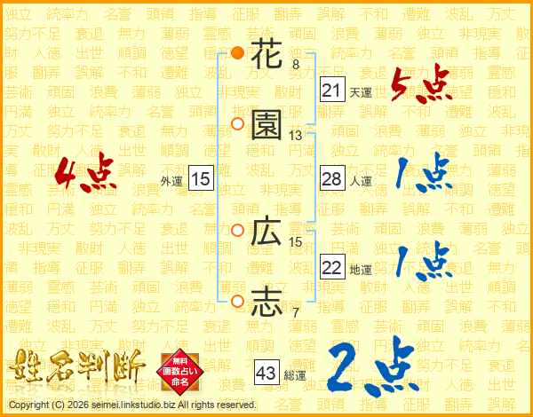 花園広志さんの総運は43画の2点!