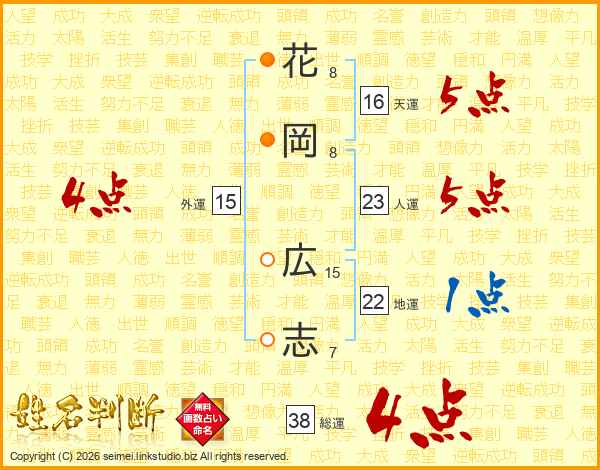 花岡広志さんの総運は38画の4点!