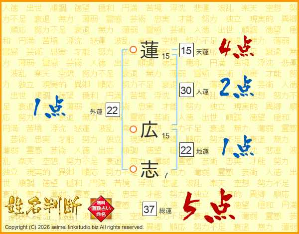 蓮広志さんの総運は37画の5点!