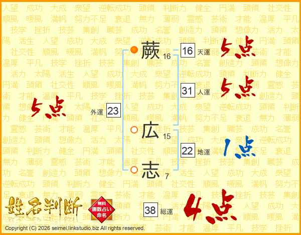 蕨広志さんの総運は38画の4点!