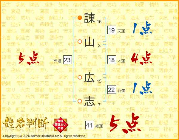 諌山広志さんの総運は41画の5点!