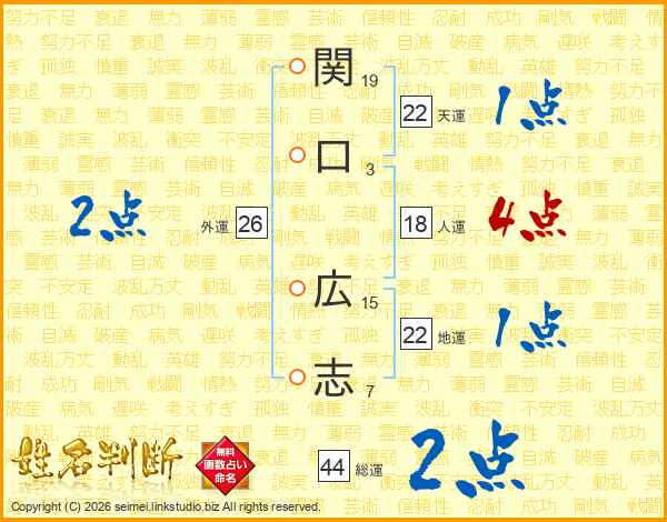 関口広志さんの総運は44画の2点!