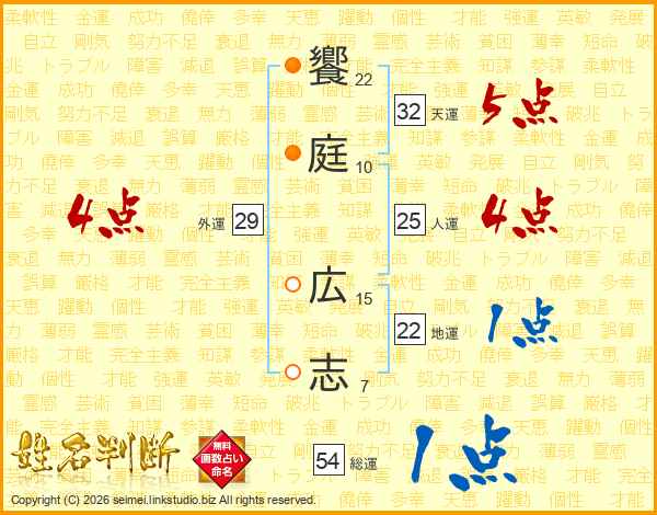 饗庭広志さんの総運は54画の1点!