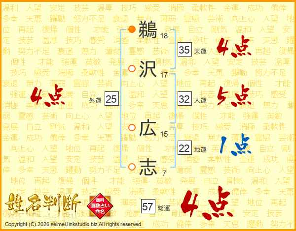 鵜沢広志さんの総運は57画の4点!