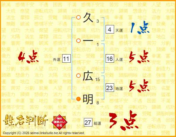 久一広明さんの地運は23画の5点!