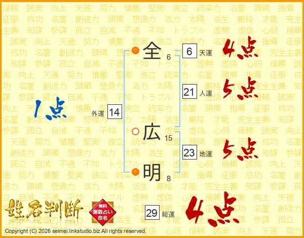 全広明さんの総運は29画の4点!